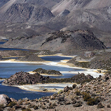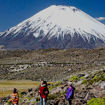 Acompañando al lago Chungará podrás encontrar a los hermanos Payachatas, con cumbres de más de 6000 m.s.n.m. El volcán Pomerape y Parinacota atraen a quienes practican este deporte.