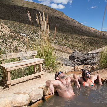 Sus aguas calientes y volcánicas afloran en medio de la quebrada seduciendo a viajeros que concurren a ellas para pasar un día de relajo o quienes concurren para curar diversos problemas de salud.