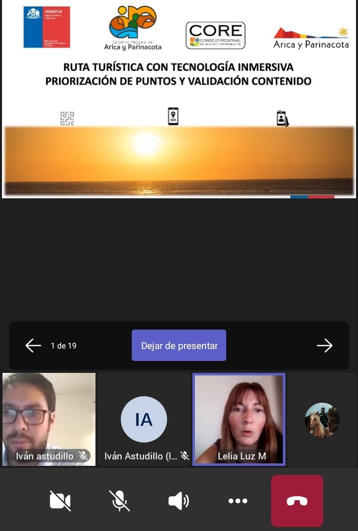 Reunidos con Guías Turísticos y Tour Operadores en charla de difusión acerca del uso e implementación de tecnología en la oferta turística regional. Se presentó la Ruta con Tecnología Inmersiva Cultura Chinchorro, que abarcará Camarones y Arica. Avanzando hacia la reactivación.